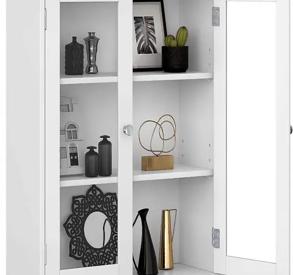 Schranktüren sind mit 2 verchromten Metallknaufen ausgestattet, sodass Sie die Türen einfach öffnen sowie schliessen können.