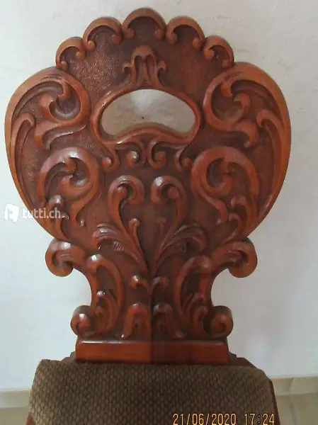 Stabellen Nussbaum Massiv Rückenlehne geschnitzt