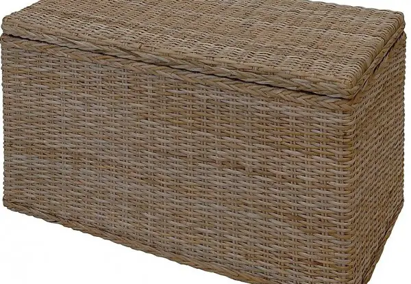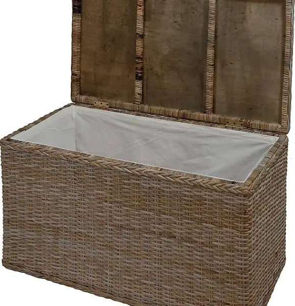 Rechteckige Wäschetruhe aus ungeschältem Rattan