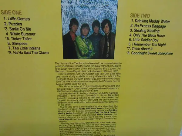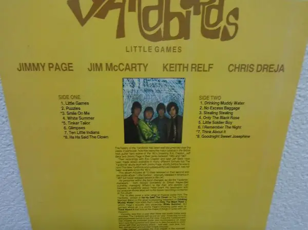10 July 1967, kam The Little Games auf den Amerikanischen Markt. Diese Auflage ist eine UK Erst Pressung von 1985, eine Compilation vom zweitem, noch mit Eric Clapton und drittem Album und das erste mit Jimmy Page wo Jeff Beck ersetzte. Eine schöne Akustische version von White Sommer, wurde dann bei