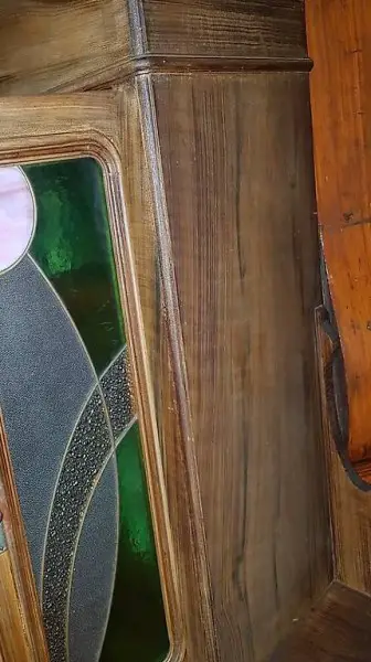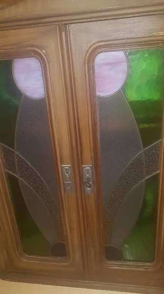 Seitlich an einer inneren Türe (oben und unten) mit Hacken noch zusätzlich verschliessbar.