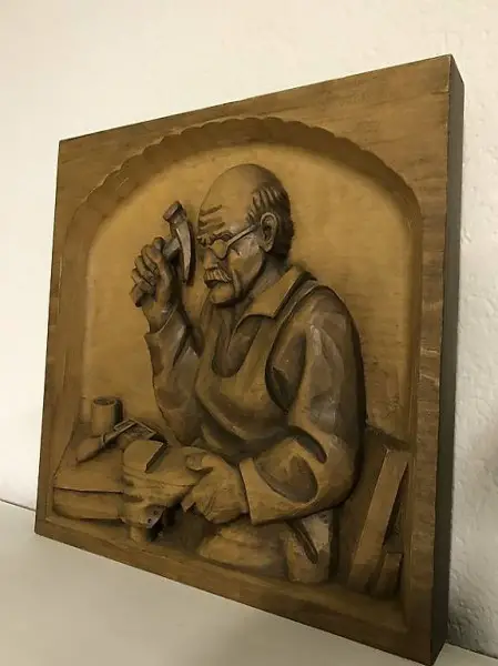 Wandbild passionierter Schuster Schuhmacher handgeschnitzt