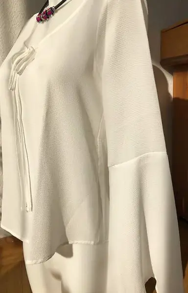 Die Bluse ist leicht durchscheinend, deshalb habe ich sie nie getragen.