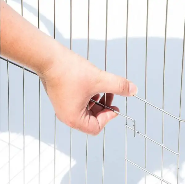 uccelli rapaci e la caduta di oggetti all'interno del recinto. L'ampia porta permette un facile accesso agli animali. Il montaggio in sé è assolutamente semplice e richiede solo pochi minuti. Il sistema ad innesto può essere montato in vario modo ed è ampliabile a piacere. Create un incantevole paradiso per il benessere dei vostri piccoli beniamini con la recinzione per esterni con rete di sicurezza di chinatech