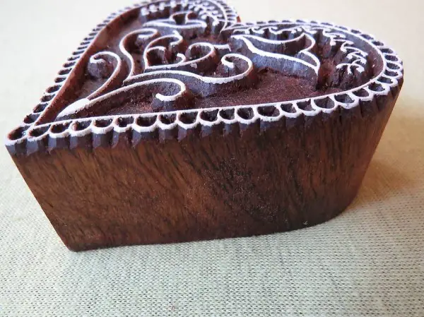 Holzstempel Blockprint für Stoff und Papier, Herz 2