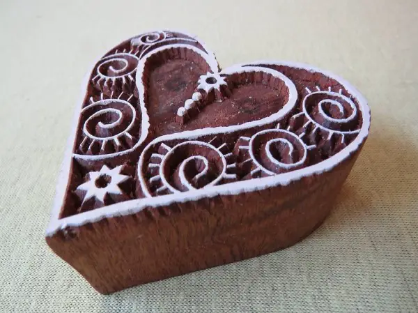 Holzstempel Blockprint für Stoff und Papier, Herz 1