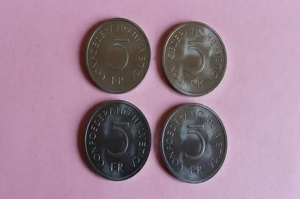 Wertseite: Es steht 5 FR. und an der Seite CONFEDERATIO HELVETICA.