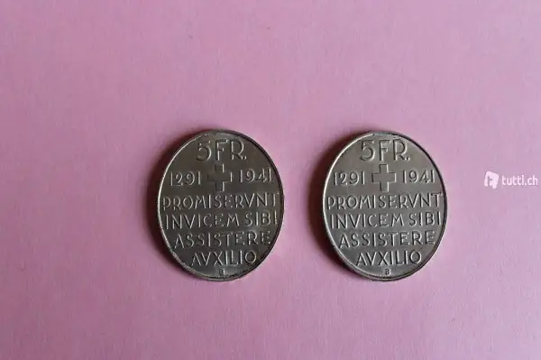 Verkaufe zwei Sonder-Fünfliber 1941 "Bundesfeier" für total Fr. 120.- inkl. Versand.
