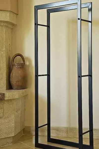 Pulverbeschichtet. Farbe - Schwarz. Das Kaminholzregal kann stehend oder liegend verwendet werden.