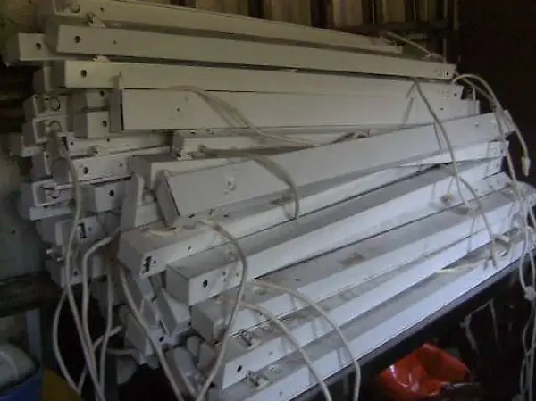 Neonlampen-Fassungen mit Röhren 900 oder 1200 mm und Kabel, 220 V, Stk. 9.- Fr., ca 40 Stück.