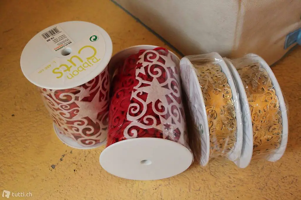 Pro Rolle Satinbänder für Fr.15.-. Es hat auch Rollen für Fr.3.- Sie können auch Meter Ware haben.