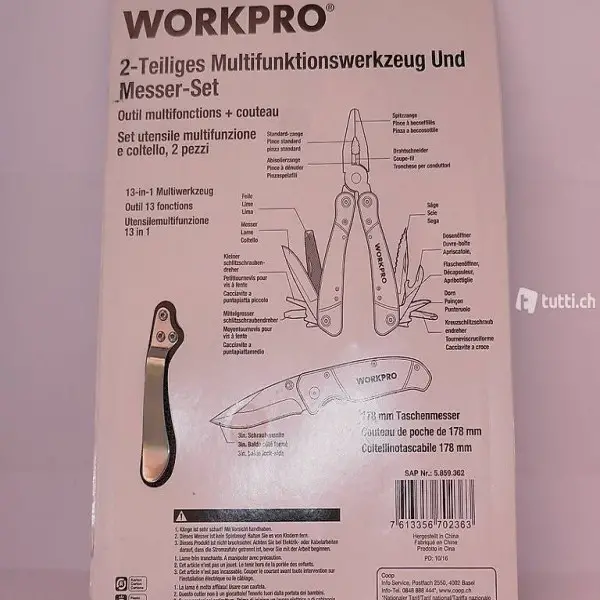 Inhalt: 1 Stk. Multifunktionswerkzeug / 1 Stk. Messer