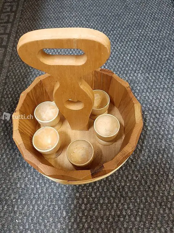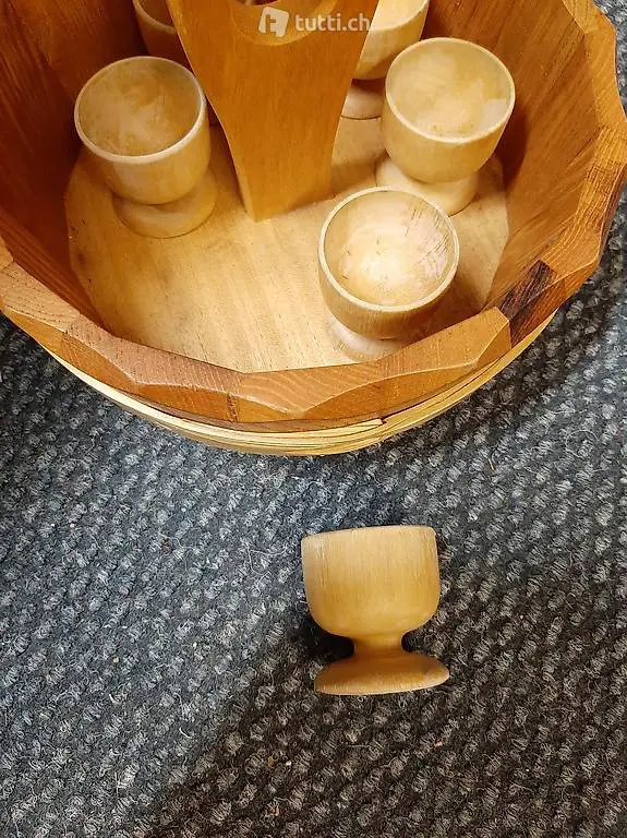 mit Holzeierbechern oder Holztrinkgefässen
