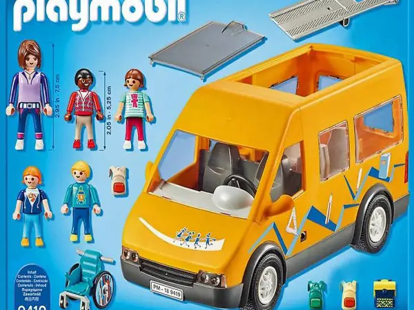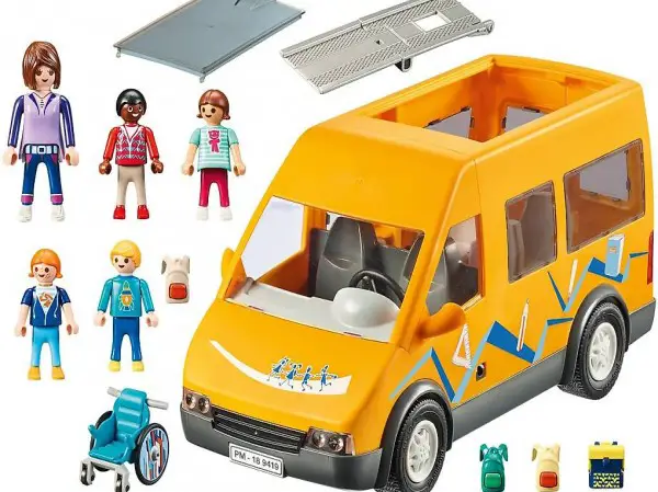 Rollstuhl an der Bushaltestelle. Kein Problem für die freundliche Busfahrerin. Im Nu faltet sie die Rampe aus und öffnet die Hecktüren. Jetzt kann das Kind mühelos in den Bus rollen. Geschwind alles wieder verstauen und schon kann die Fahrt weitergehen. Dank dieses komfortablen Busses sind alle pünktlich in der Schule. Busfahren macht Spass: Im Fahrzeug ist Platz für fünf Figuren und einen Kinderrollstuhl.
