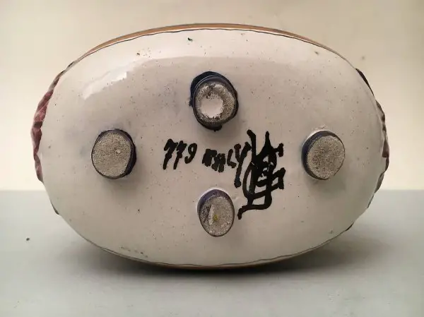 Antico vasetto in maiolica, manifattura centro italia decorato a mano, firmato alla base.
