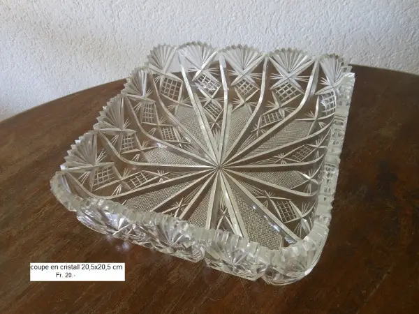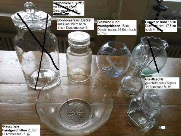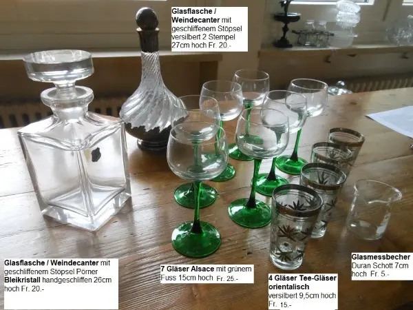Blumenmuster geritzt (z.B. für Eau de Cologne) mit Korkstöpsel und Metallkappe Masse: h16cm Durchmesser 6,5cm Fr. 15.-