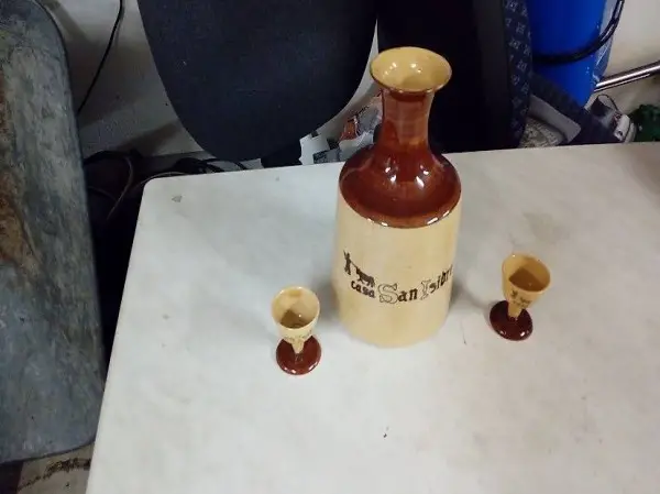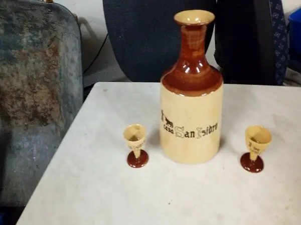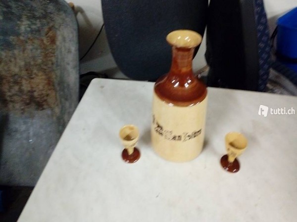 Ein älterer Likörkrug mit zwei kleinen Trinkbecher dazu vermutlich Ton oder Keramik, gebraucht aber alles noch im sehr gutem Zustand, schaut auch meine anderen Artikel, kann auch versendet werden