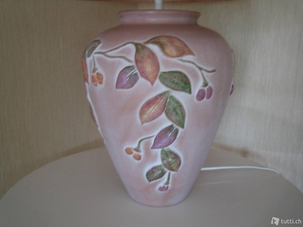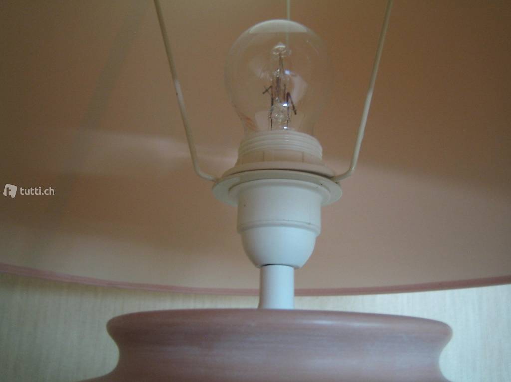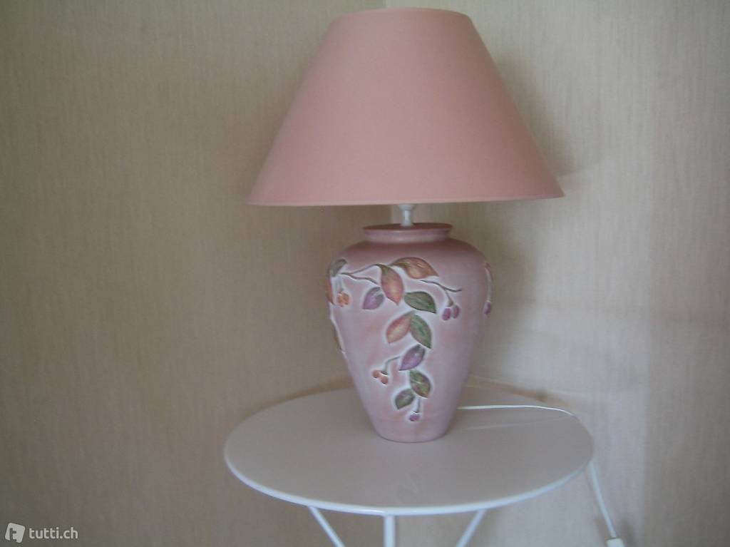 Lampenfuss 34cm. Farbe: Fuss terracotta weiss lasiert, Schirm abricot. Auf einer Seite des Schirms sind ein paar kleine Flecklein zu sehen (sind jedoch kaum sichtbar), Lampenfuss wie neu. Passt zu Landhausstil, mediterran, Provence. Aus Nichtraucher-