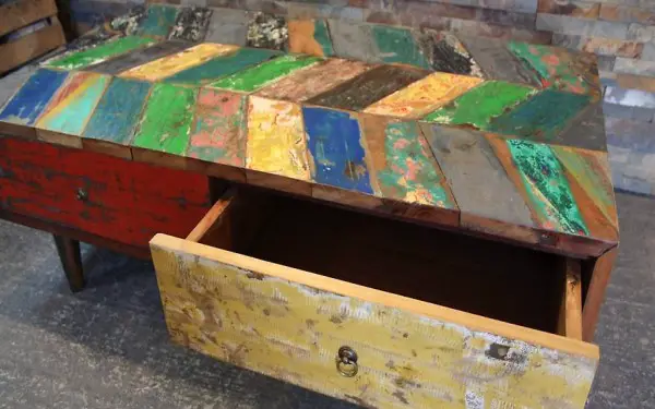 made of recycled teak wood by hand