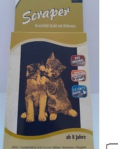 1 x Kratzbild Gold Kätzchen 10.5*14.4cm mit Rahmen