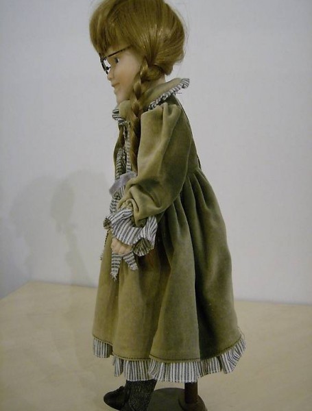 Eine Sehr schöne Puppe, hat schöne Augen und eine Brille, mit Kleid Hell Braun mit Grau