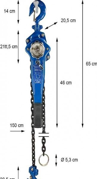 FLASCHENZUG MIT HANDHEBEL 3000KG 1.5M - Der perfekte Helfer zum Ziehen, Zurren, Spannen, Richten und vielem mehr.