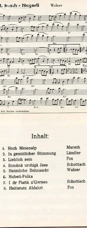 Musikhefte 2 Stück "Im Waldhüsli Ausgaben 2 und 3. Inhalt Ausgabe 3 vide Foto. Bei Ausgabe 2: Kägiswiler-Gruss, Busch-Negerli, Im Traumland, De Glausi het Durst, Uf Schlichwägä, Mis Schätzli wird übermüetig, Im Hostetli, Isnä-einä, alle 2stimmig bei Ausgaben 2 und 3