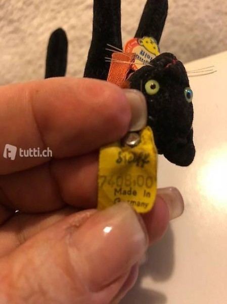 Katze Schwarz ist im Gutem zustand mit keinen gebrauchsprurren ca Hohe 13 cm Lange ca 8 cm Hatt den Kopf im Ohr