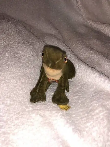 Steiff Frosch Froggy ist im Gutenn zustand mit keinen gebrauchsprurren ca Hohe 8 cm Lange ca 9 cm Hatt den Kopf im Ohr