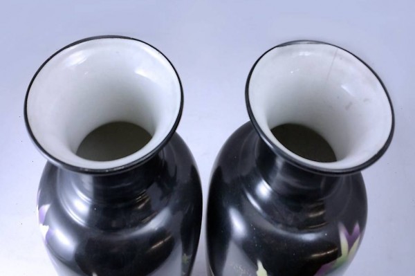 Das elegante, schwarzlasierte Vasen-Paar mit einem sehr aparten