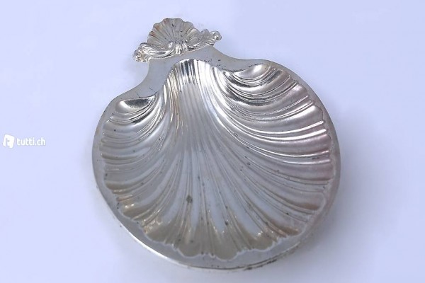 Für die stilvolle Präsentation Ihrer kleinen Apréritif-Häppchen oder für die Ablage von kleinen Schuckstücken. Aus in Form gepresstem und silberfarbig lackiertem Blech.