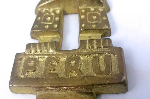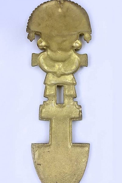 Diese Figur ist eine sehr dekorative Nachbildung des Inka Tumi Ritual- und Opfermessers aus dem alten Peru. Die Wandplakette ist aus massivem Messing hat einen hinten angebrachten Aufhänger.