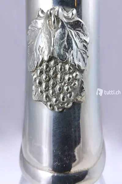 Servieren Sie Wein, Liköre usw gediegen und stilvoll in dieser schönen Glaskaraffe mit den Traubenmotiven aus Zinn. Der auffällige und aufklappbare Schnabelausguss erstreckt sich über den ganzen Karaffenhals. Der filigrane Henkel ist ebenfalls aus Zinn und endet mit einem Traubenblatt als Befestigung.