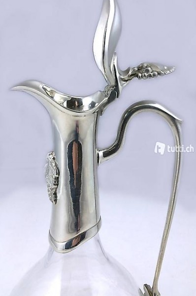 Glaskaraffe mit Traubenmotiven aus Zinn
