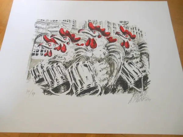 Büttenpapier, von Christopf Gloor, geb. 1. November 1936 in Basel, gest. 26. März 2017, Karikaturist, Maler, Zeichner, Bildhauer, handsigniert 75/100 1999, Masse 70x50cm Fr. 340.-