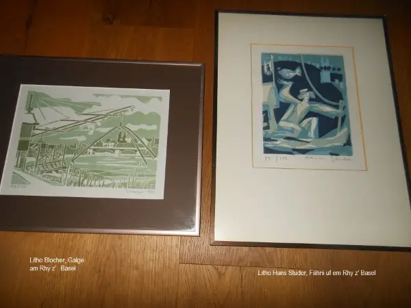 BILD LITHOGRAPHIE Die Rhein Fähre in Basel von Hanns Studer Basler Künstler 1920-2018, Handsigniert, nummeriert 79/150 vom Künstler, gerahmt 40x30cm Fr. 90.-