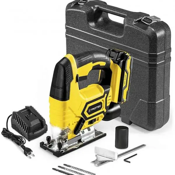 Gummierte Softgrip-Einlagen im Bügelgriff-Gehäuse für extra guten Halt | TÜV-geprüfte Qualität mit doppelter Sicherheitszerti?zierung für Akku-Stichsäge und Ladegerät
