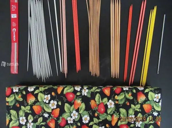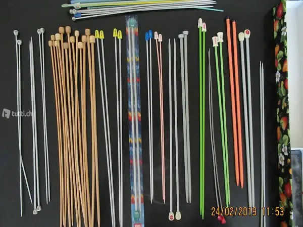 Stricknadeln, und viele einzelne, jede Grösse auch Holzstricknadeln,