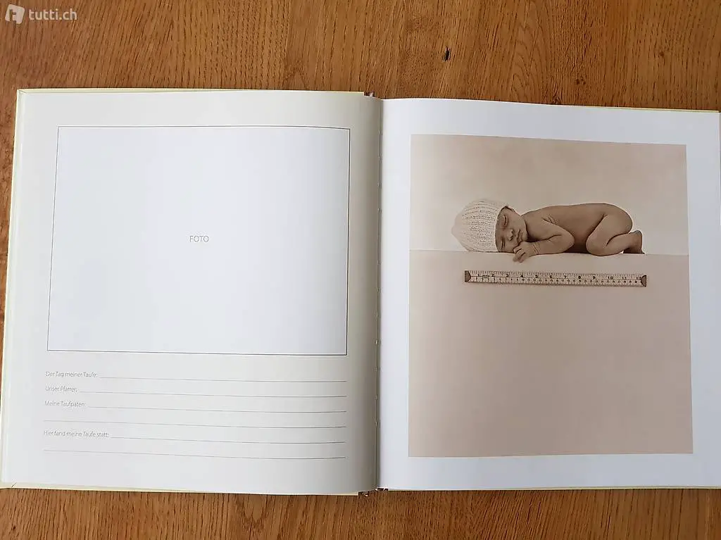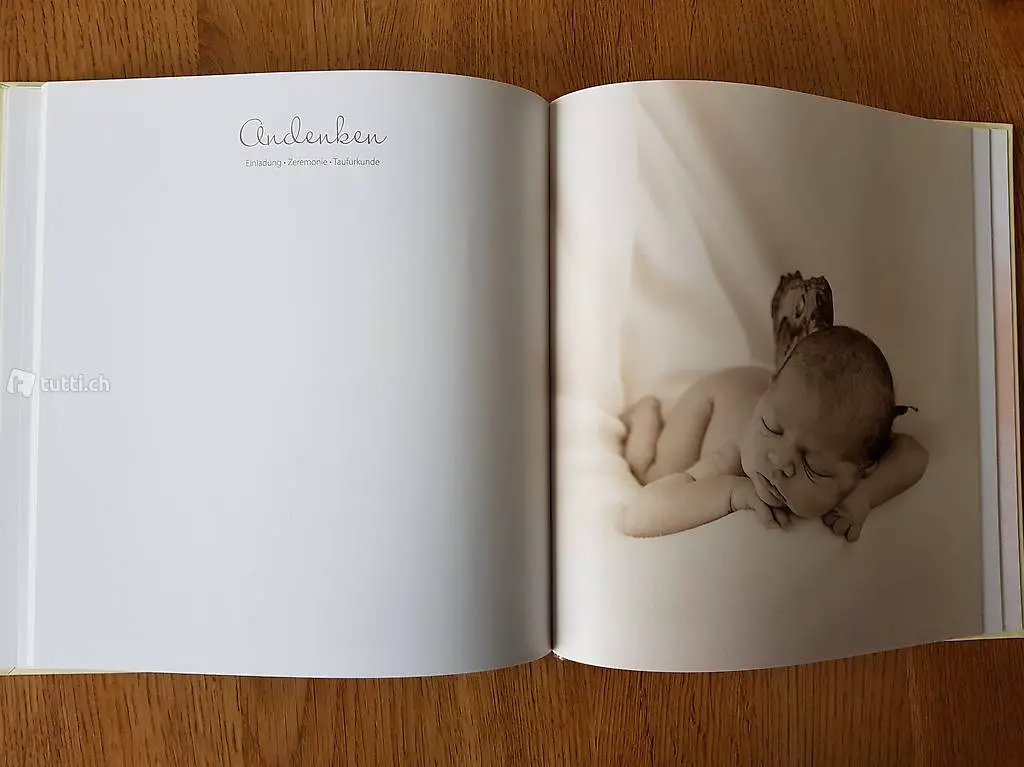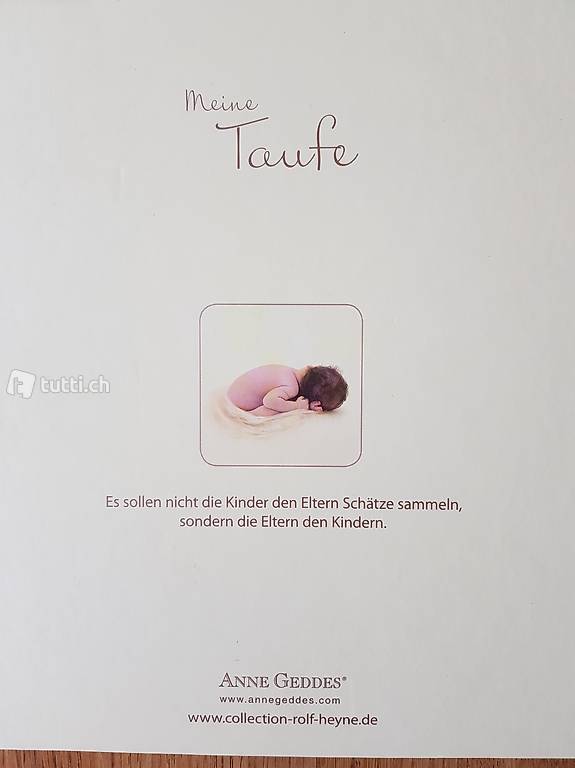 von Anne Geddes um die Erinnerungen an die Taufe mit Fotos und Texten (Beschrieb des Tages, Glückwünsche der anwesenden Gäste, Taufgeschenke etc.) festzuhalten.