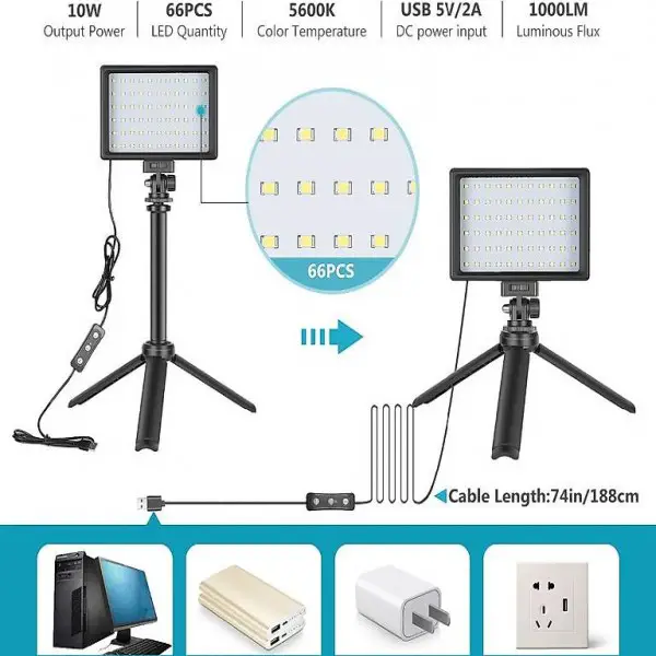 Beleuchtung Kit Dimmbare 5600K USB 66 LED Video Licht mit