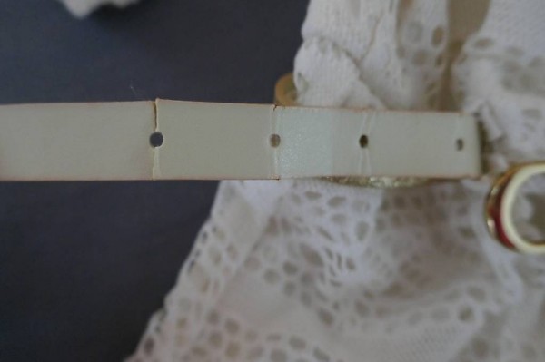 Der Gurt ist an einer Stelle leicht gebrochen, aber er kann nach wie vor gebraucht werden (vgl. 4. Foto).