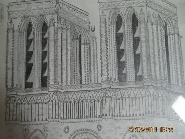Notre Dame Paris Kunstwerk gezeichnet 1975 von R.W