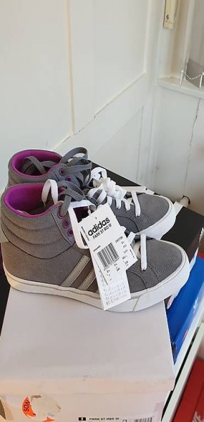 Lässige AdidasNeo Schuhe in grau/lila knöchelhoch. Super geeignet für den kommenden Frühling. Ist aus einer Geschäftsauflösung wird jedoch Privat verkauft. Neu und in Originalkarton. Neupreis ist Fr. 99.-. Den Schuh haben wir noch in den Grössen 36 2/3 1x, 38 1x, 38 2/3, 40 und 41 1/3. Bei Fragen kann man mich via SMS oder E-Mail kontaktieren. Barzahlung bei Abholung.
