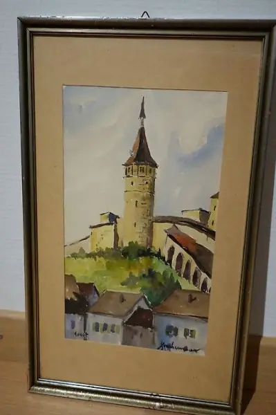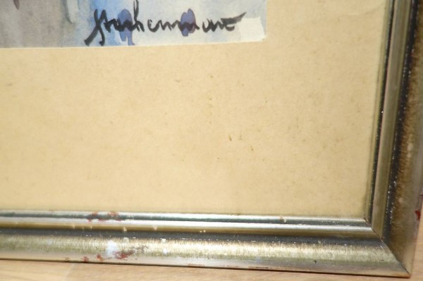 hübsche Aquarellzeichnung des Schaffhauser Wahrzeichen Munot, original von Künstler Strohemann?? (Signatur unten li), silberfarbener Rahmen, gut erhalten; ca. 70-80 Jahre alt, schönes Erinnerungsstück oder ideales