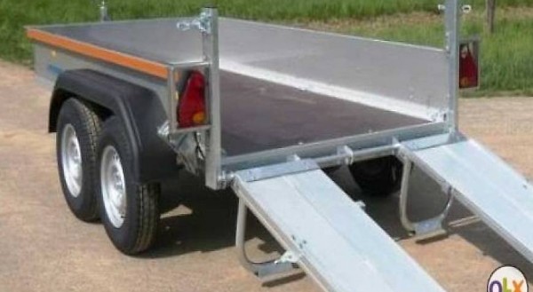 Tandemachser mit Auflaufbremsen und Rückfahrautomatik, Gummifederachsen, 50mm Kugelkupplung, verstärkter und verschweisster, feuerverzinkter Rahmen. Siebdruckboden, 4 Binderinge (es können mehrere nachgerüstet werden) , 2 Alu-Auffahrrampen mit integrierten Stützbügel seitlich verschiebbar, Alublech zwischen den Rampen. 12 Volt-