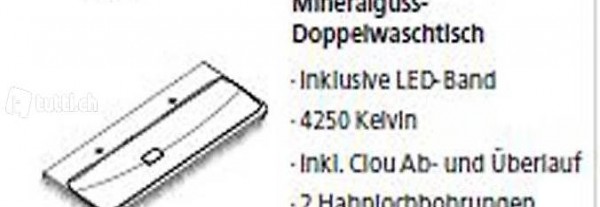 Mineralguss Doppelwaschtisch , 2 Hahnlochbohrungen B 1275 H40 T 535 mm oder