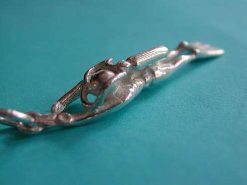 En Argent massif de qualité et bien travaillé, c'est un bijou qui mesure 44 mm. de long (51 mm. avec son anneau.) et pèse 5,5 gr. Estampillé du poinçon de titre 925 et de mon poinçon de garantie déposé à Berne. Argent sans nickel - pas d'allergie. Article neuf