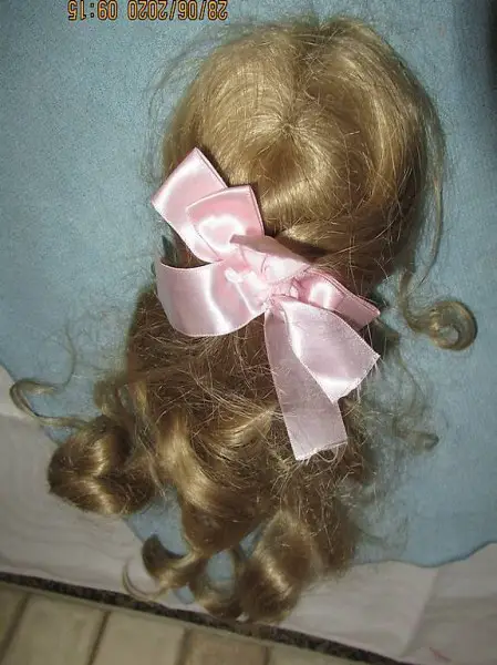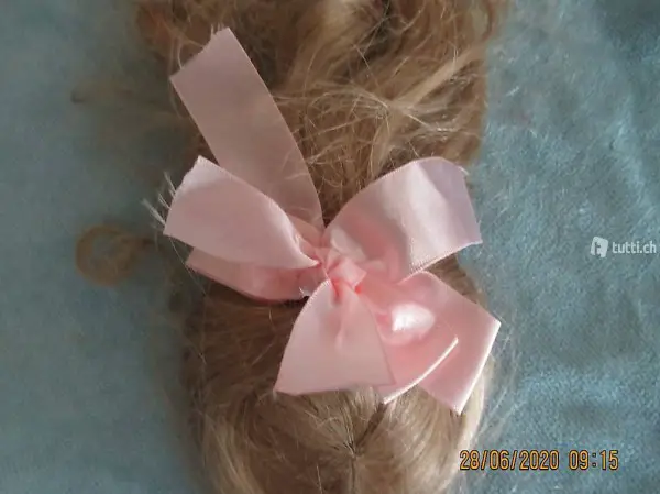 langes, blones, gewelltes Haar mit rosa Schleife, Zustand ungebraucht