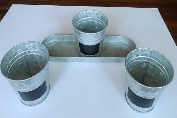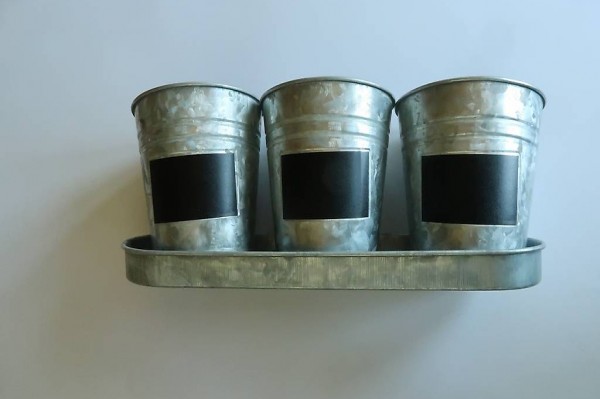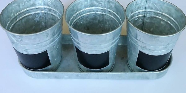 Stilvolles 3er Set Pflanztopf / Kräutertopf / Blumentopf aus Metall zum Bepflanzen, inkl. Beschriftungsfeld und Untertopf!
