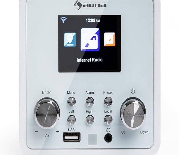 farbiges TFT-Display, USB-Port, Kopfhörer-Ausgang, Wetteranzeige, weiss